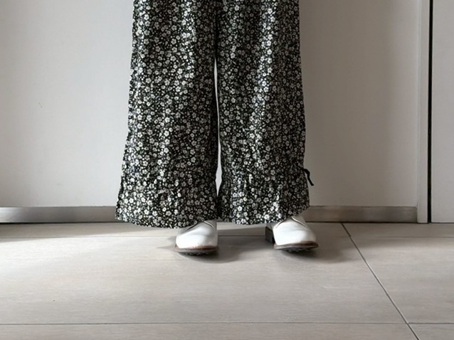 ちらりと覗くflower patternが可愛らしいコーディネート。