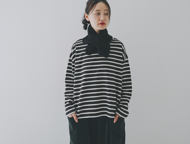 丈は短くなっていますが、身幅はたっぷりとゆとりがあるデザインなので、レイヤードしやすくなっています。