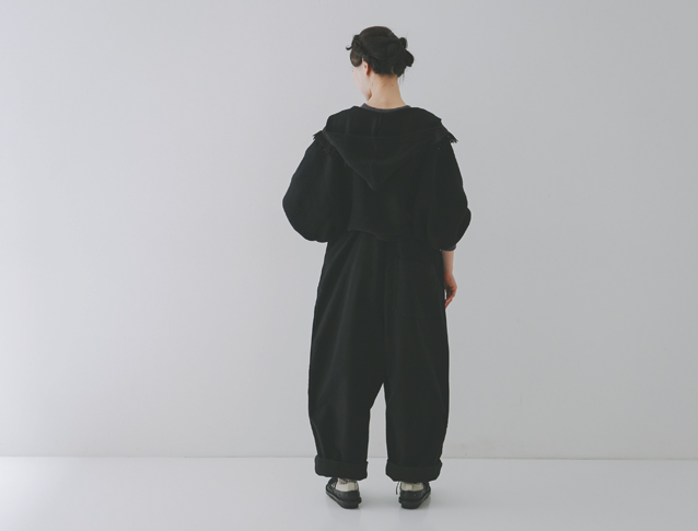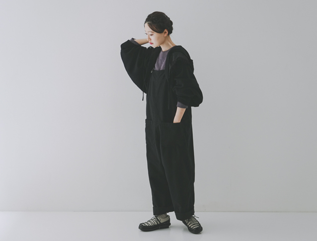 フードやサロペットは、子供っぽい印象になるのでは?と思われる方もいるかもですが、落ち着いたトーンでまとめるとオトナな雰囲気でまとまります。