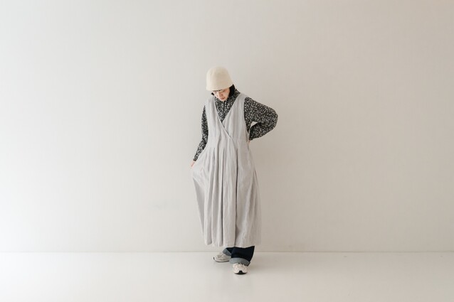 リネン天然染め2wayタックドレス (L.BLUE) ¥38,500(税込) / nest Robe