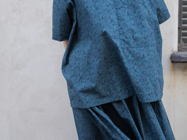 コンパクトな花柄のポプリン生地には、イタリア・コモ湖畔の伝統ある家族経営のプリント工房にて、