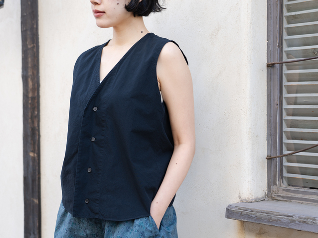 アームホールはV字に設計され、レイヤードに自然な抜け感を生み出します。