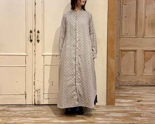 リネンプラッドプリントシャツワンピース(柄)¥53,900(税込) / nest Robe
