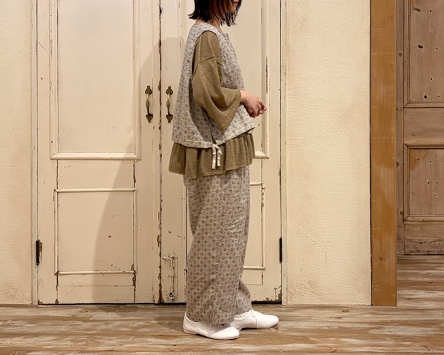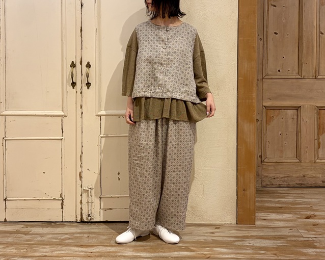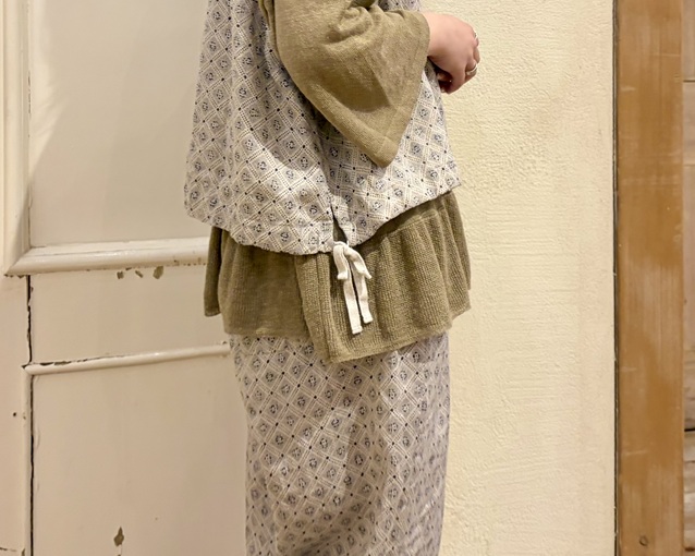 リネンプラッドプリント2wayベスト (柄)¥33,000(税込) / nest Robe