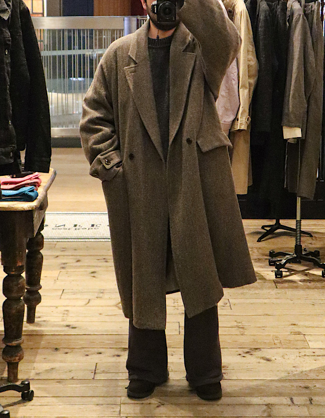 ただ、そんな緩い雰囲気をまとめ上げる英国クラシックの王道ツイードの生地とチェスタコートという形の説得力。