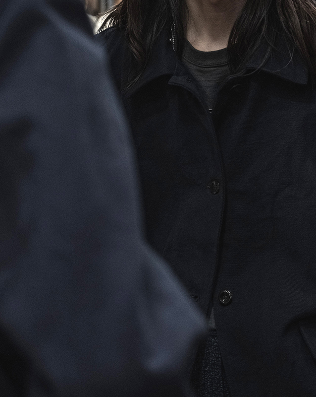 今シーズン、デザイナー自身が手に入れたことを最も嬉しく思ったであろうファブリックがこちら。それは、1960年代のドイツのヴィンテージワークウェアの生地です。この生地は、溶接工、錠前屋、自動車タイヤやゴム産業で働く男性など、家的工業環境で働く金属工の作業服に使われていたファブリックです。この生地を使用した2型のアイテムをピックしました。一つは、脱着可能なフードを持つ、ロングコート。もう一つは、テーラードジャケットのような袖、肩のフォルムを持つカバーオールです。
